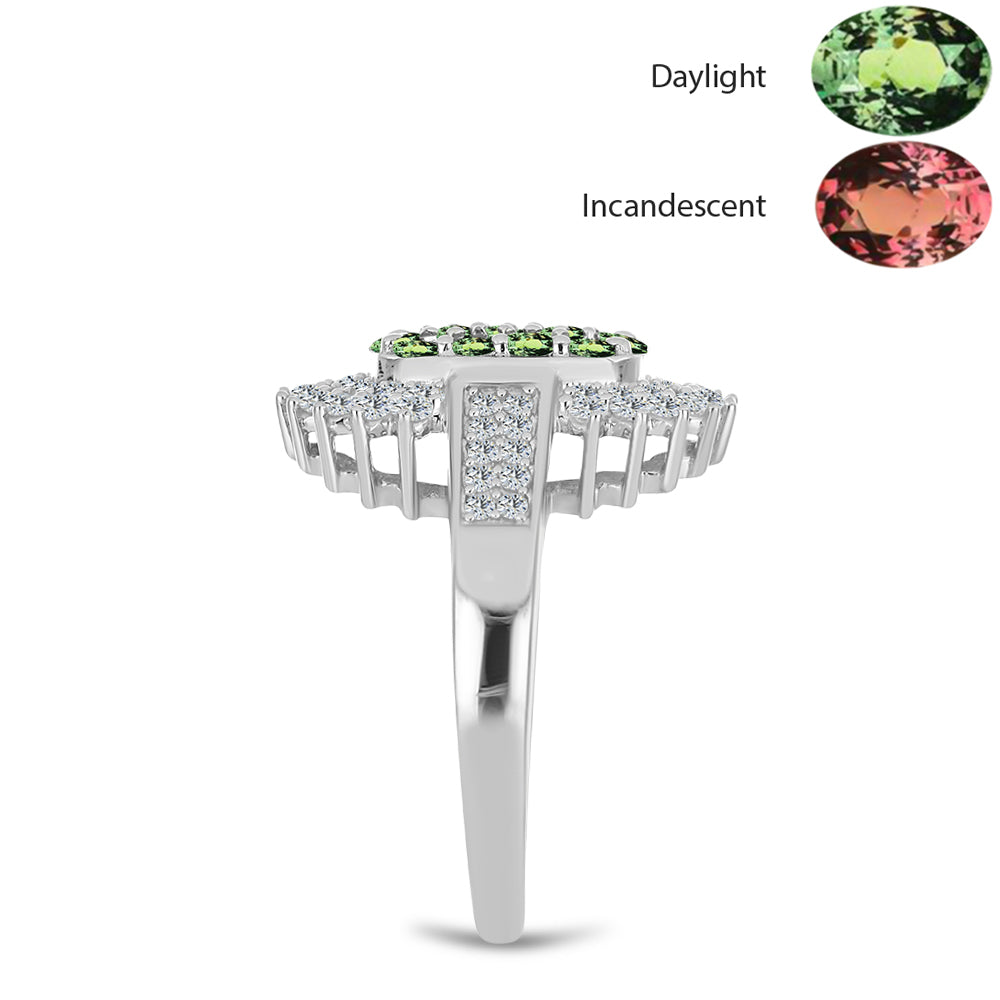 Anillo de Plata con Alejandrita natural y Topacio Blanco / Quilates 1.3 / Peso aprox.: 4.16 gramos Código: Y62019 Talla de la Joya: 18.00 mm x 21.50 mm