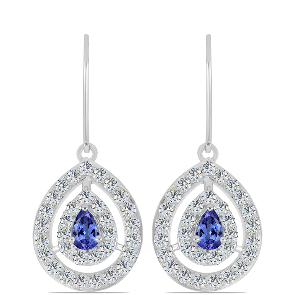 Pendientes de Plata con Tanzanita y Topacio Blanco / Quilates 3.44 / Peso aprox.: 4.26 gramos Código: Y59588 Talla de la Joya: 37.60 mm x 16.00 mm Tipo de cierre: Cierre Ballestilla